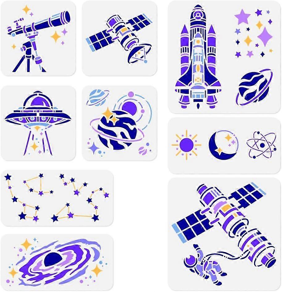 9 Pack Space Universe Planet Craft Stencil for Painting Reusable Plastic Aviation Themed Stencil for Painting on Wall Wood Fabric Canvas DIY Home Deco