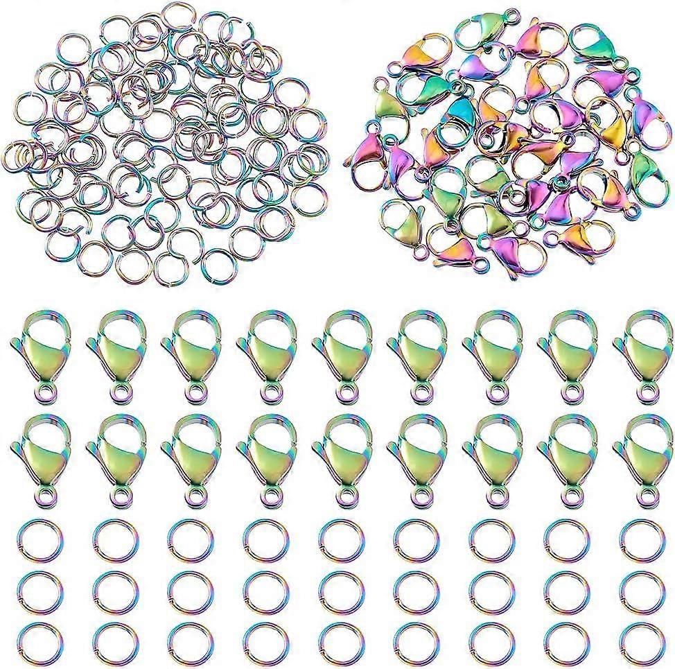 120pcs 304 Stainless Steel Lobster Clasps with Open Jump Rings Set 15x9mm Lobster Claw Clasps Jewellery Connectors Links for Bracelet Keychain Pendant