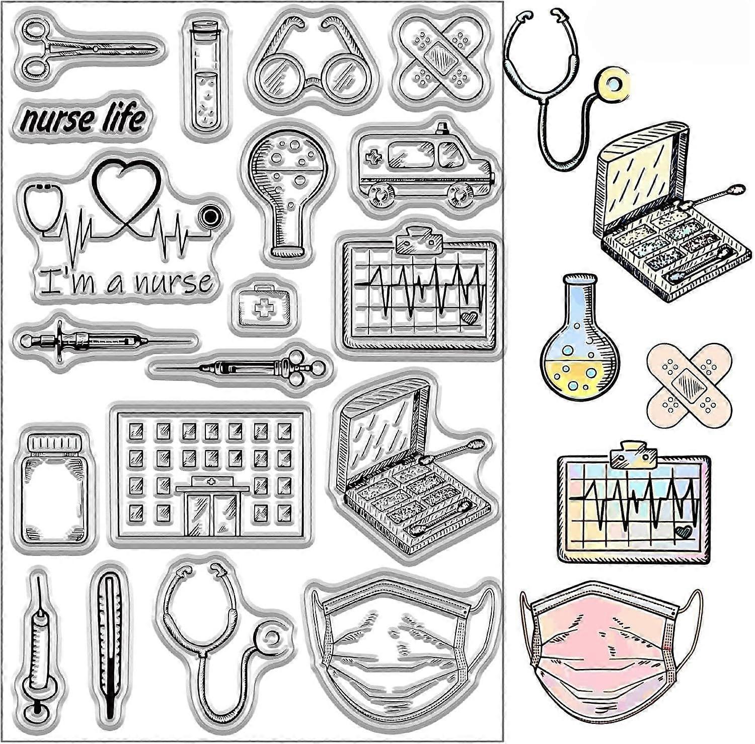 Nurses' Day Clear Stamps Vintage Hospital Reusable Transparent Silicone Stamp Seals for Journaling Card Making Decor DIY Scrapbooking Photo Album Deco