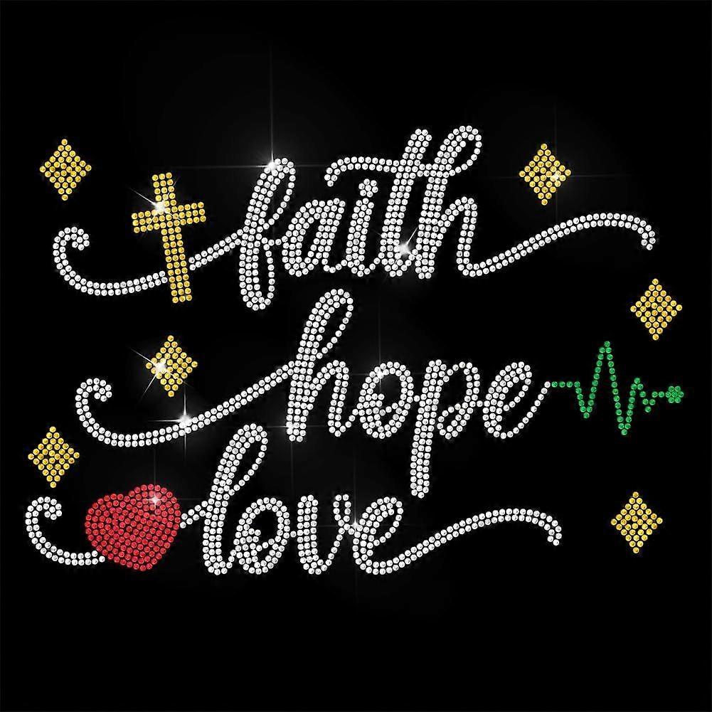White Rhinestone Iron on Transfer Faith Hope Love Bling Diamond Hotfix Patches for Clothes 11.6"x8.2" Large Iron On Sequin Applique for Jeans Jacket C