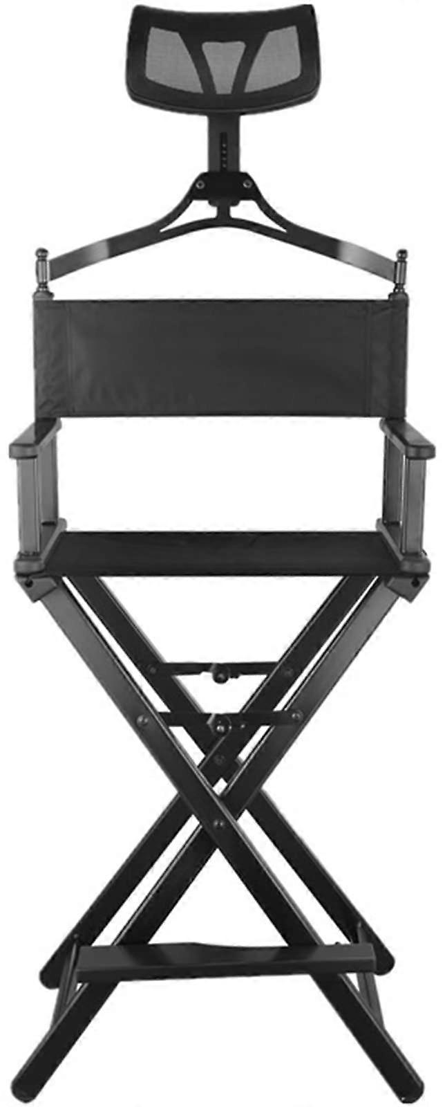 Folding Directors Chair With Headrest Aluminum Portable Makeup Artist Chair Tall Foldable 300 Lbs Black