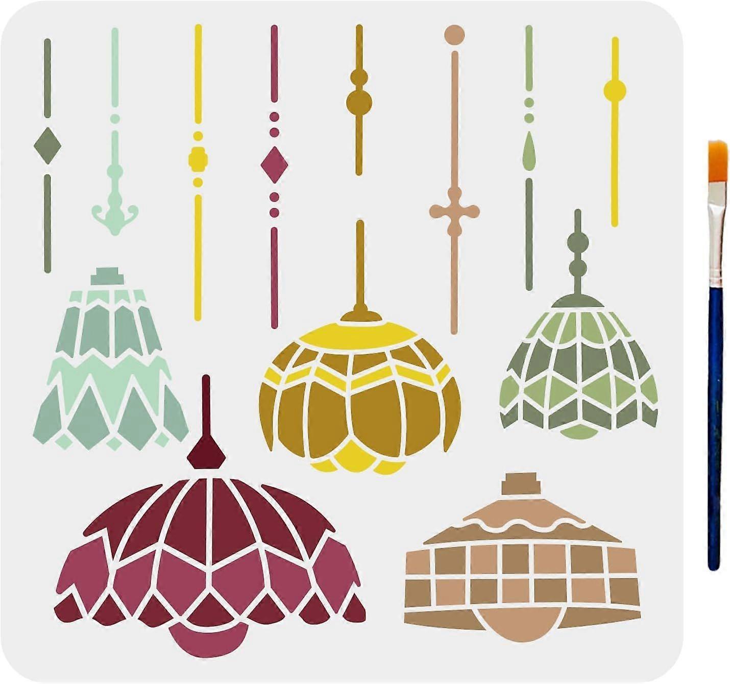 Lamp Stencil Chandelier Light Stencil Party Lights Template 11.811.8inch with Paint Brush Flexible Washable PET Material for Home Decor Wood Sign