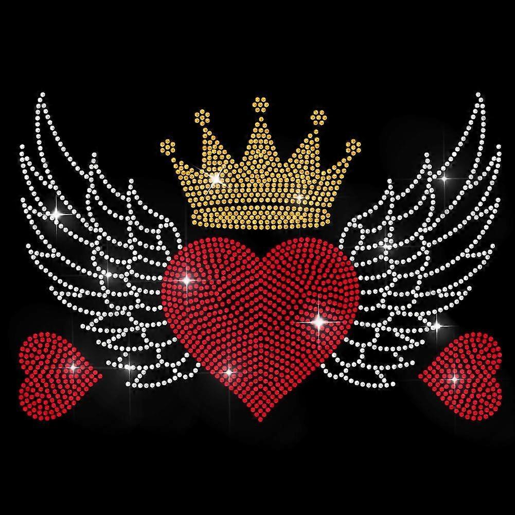 Love Wings Rhinestone Iron on Hotfix Heat Transfer Decal Golden Hot Fix Rhinestone Applique Valentine's Day Bling Clothing Repair Patch for T-Shirts H