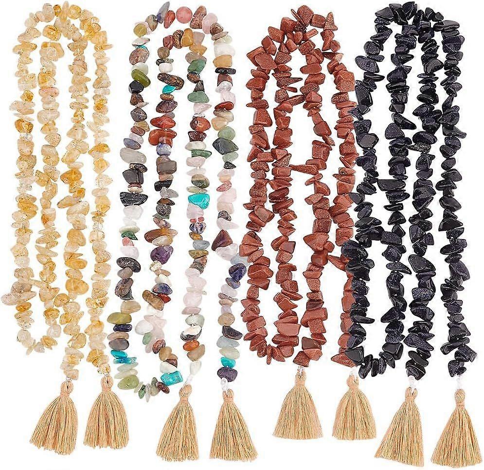 4pc Natural Gemstone Bead Garland with Tassel 29.5 Inch Length Irregular Shape Gold Blue Red/Green Jute