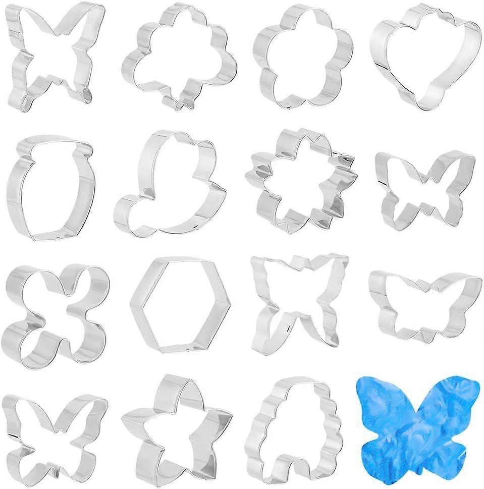 15pcs Cookie Cutter Set Spring Biscuit Fondant Cutters 430 Stainless Steel Biscuit Cutter Flower Butterfly Cookie Cutter for Valentine's Day Wedding M