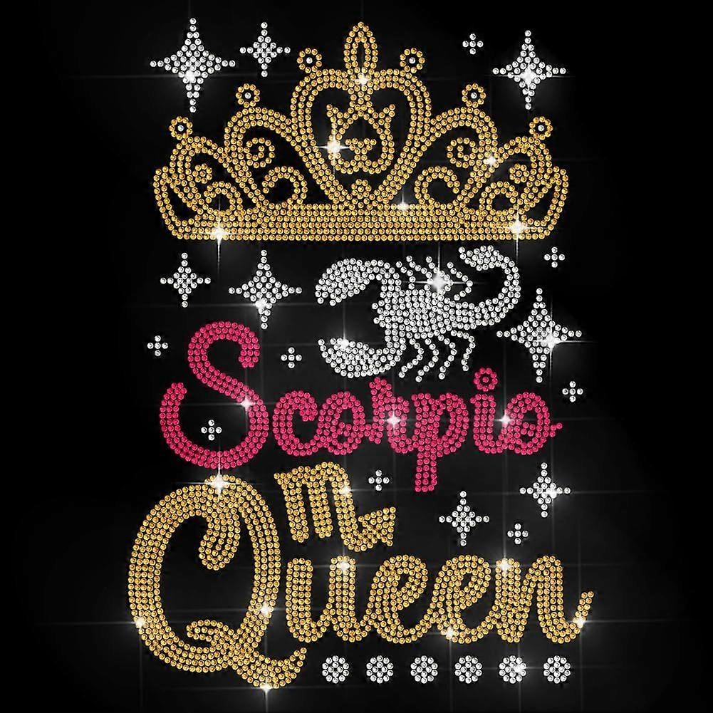 Scorpio Queen Rhinestone Iron on Hotfix Transfer Scorpion Star Heat Transfer Sticker Constellation Bling Clothing Decoration Applique for Shirt Bag Ha