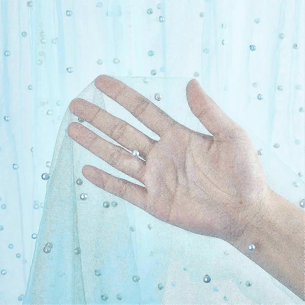 3 Yards Pearl Mesh Fabric 69Inch Wide Pearl Beaded Tulle Fabric Sheer Mesh Fabric Bridal Veil Wedding Table Decorations for Bridal Shower Bridal Dress
