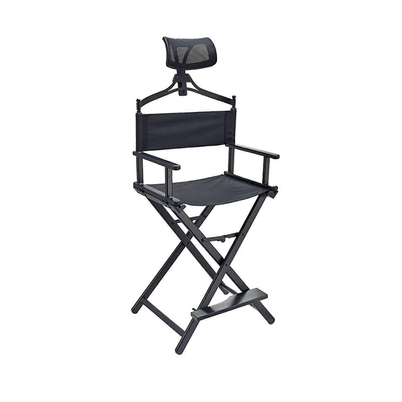 Folding Directors Chair - Portable Aluminum Makeup Artist Chair with Head Rest, Black, 108x48cm, Lightweight and Foldable