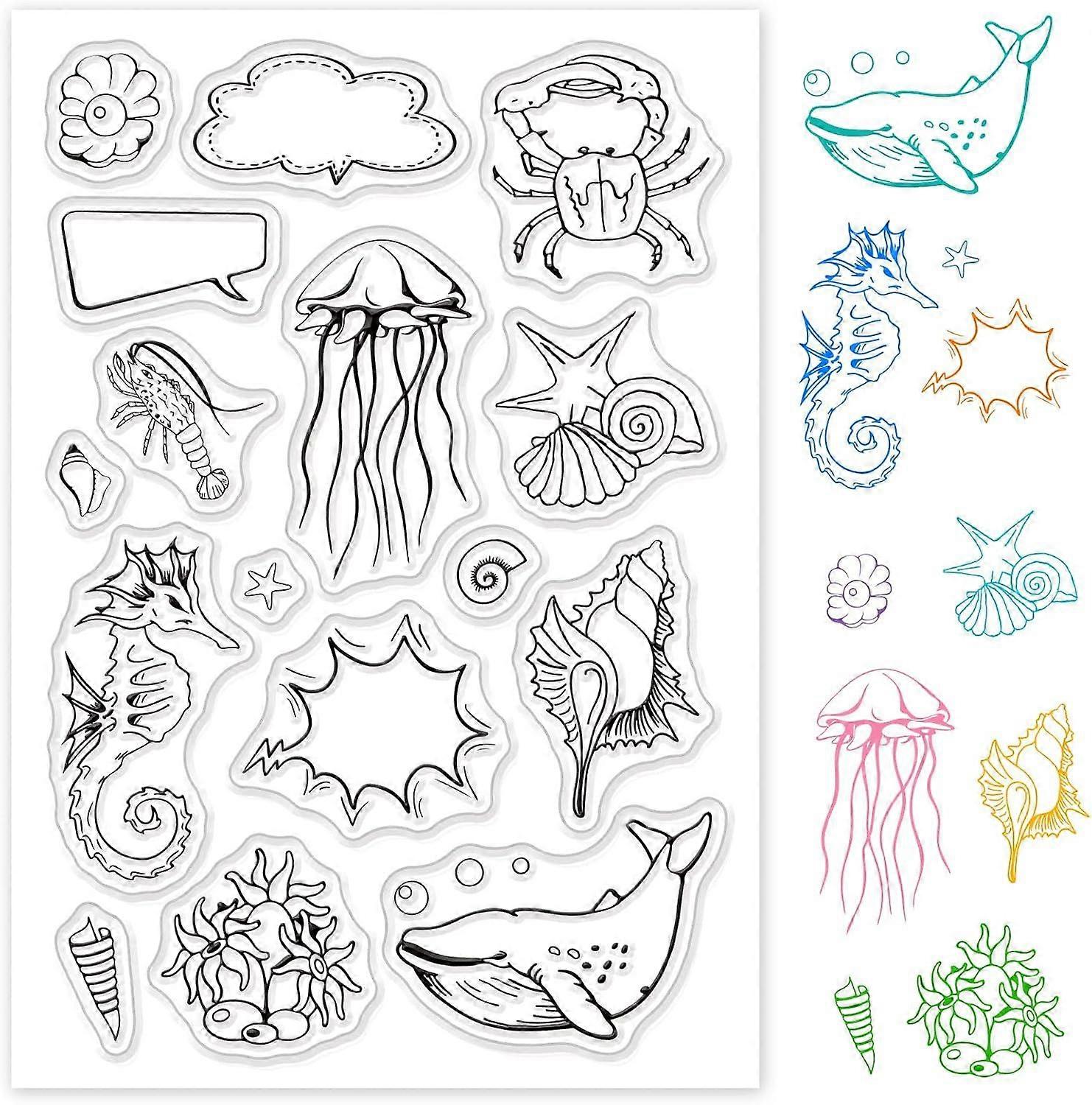 Sea Life Clear Stamps Silicone Stamp Cards Ocean and Sandbeach Life Clear Stamps for Card Making Decoration and DIY Scrapbooking