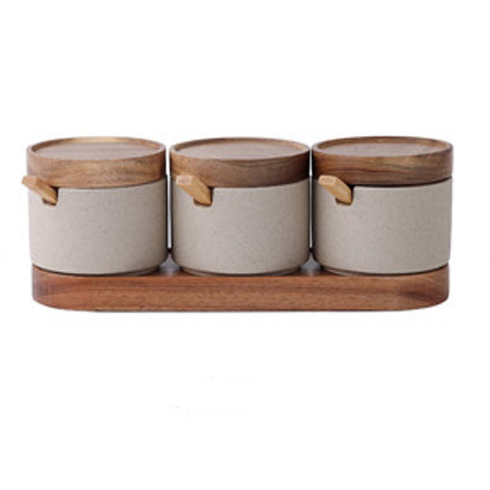 Japanese Vintage Ceramic Spice Jar Set with Wood Tray, Handpainted 2200ml Kitchen Storage