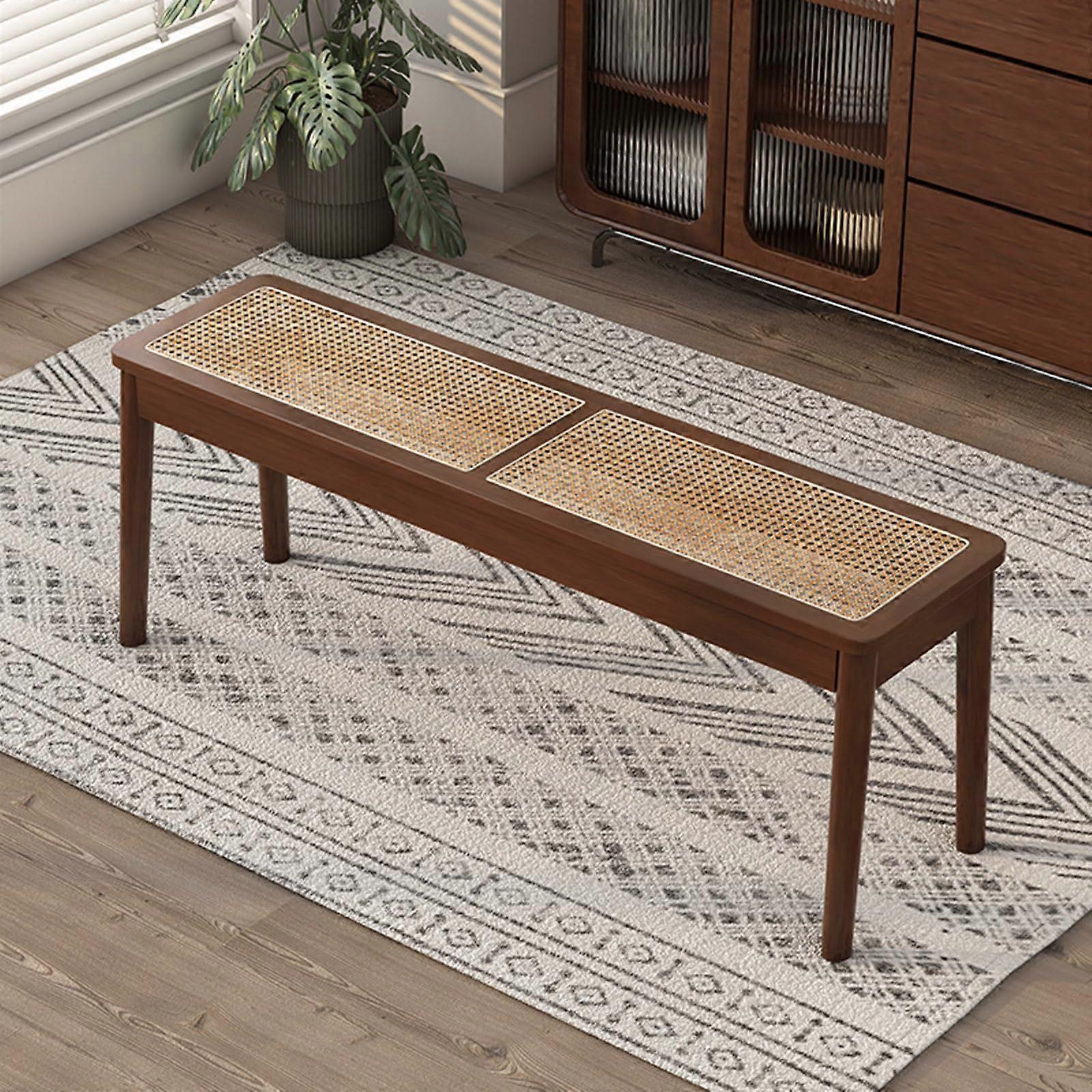 Rustic Rattan Woven Entryway Bench Solid Wood Farmhouse Seating for Dining Room Bedroom Balcony