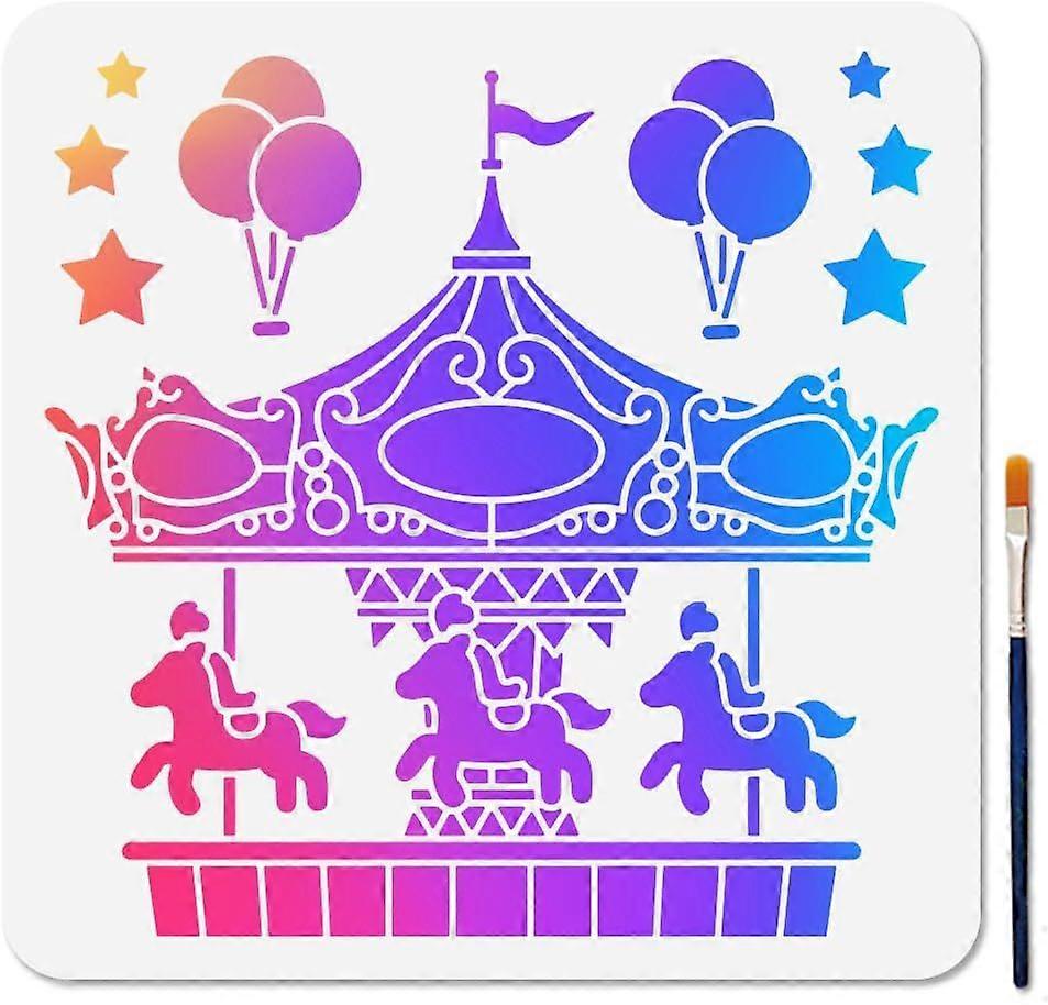 Carousel Horse Stencil 11.811.8inch Circus Carnival Stencils for Painting Balloon Stars Playground Templates with Paint Brush for Gift Decoration Craf