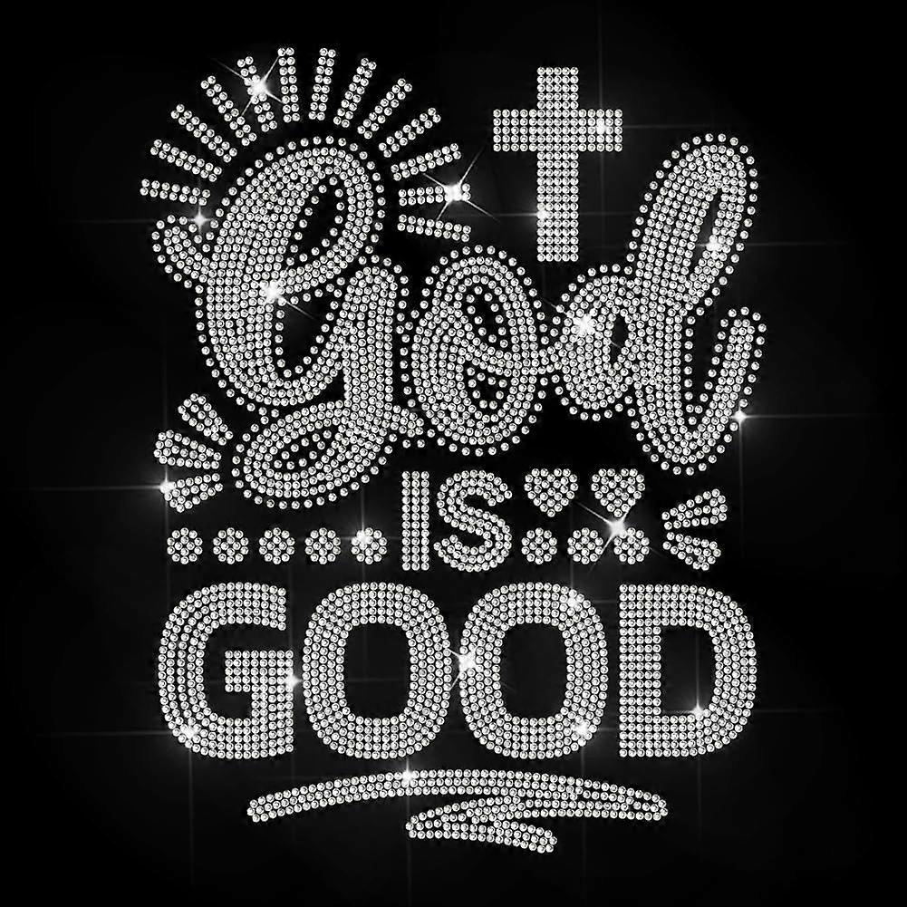 God is Good Rhinestone Iron on Decal Hotfix Transfer Sticker Sacred Texts Heat Transfer Patch Bling Clothing Repair Applique for T-Shirt Hat Jacket Ga