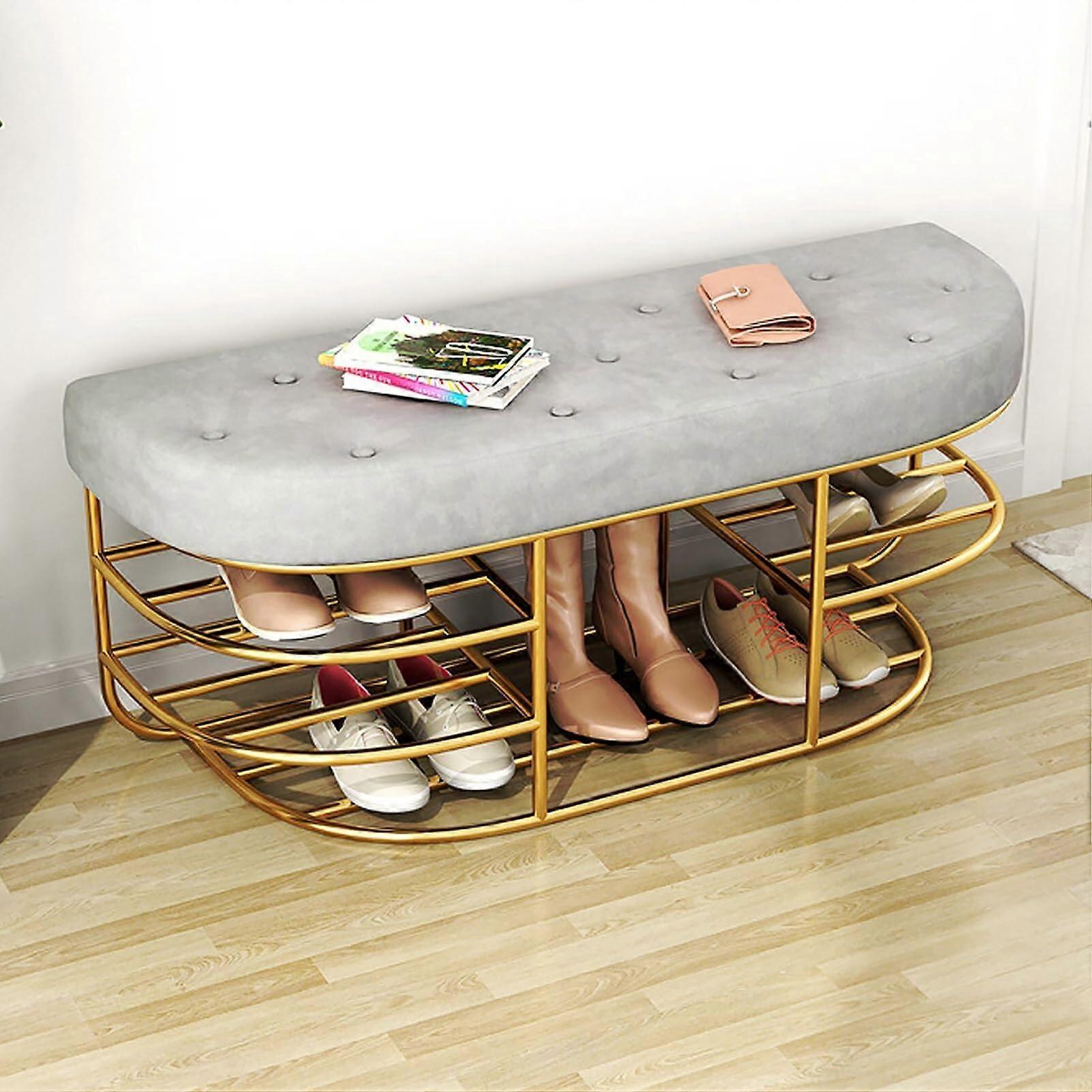 Velvet Shoe Storage Bench with 3Tier Metal Rack for Entryway, Hallway, Living Room Grey