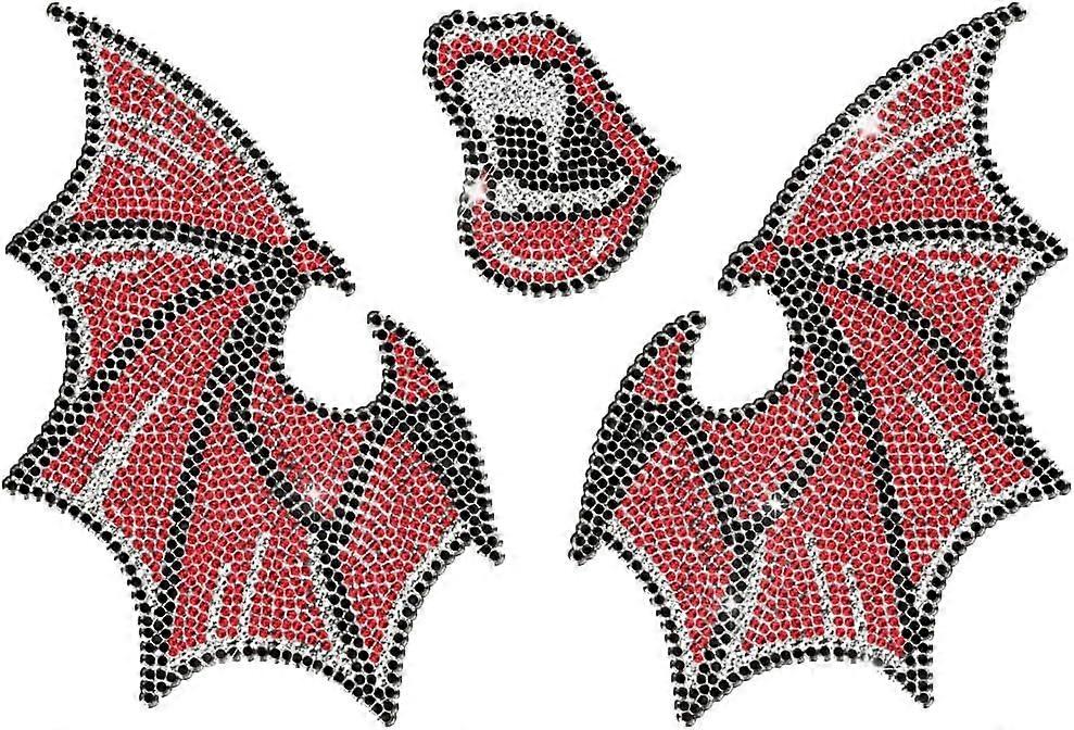 Red Rhinestone Iron on Transfer Devil Wings Bling Diamond Hotfix Patches for Clothes 11.6"x8.2" Large Iron On Sequin Applique for Jeans Jacket Caps Ba