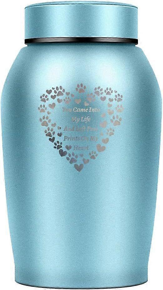 6cm Diameter Stainless Steel Urn Sky Blue Paw Print Love Column Pet Urns Small Engraved Animal Memorial Keepsake Ash Holder Urns with Velvet Drawstrin