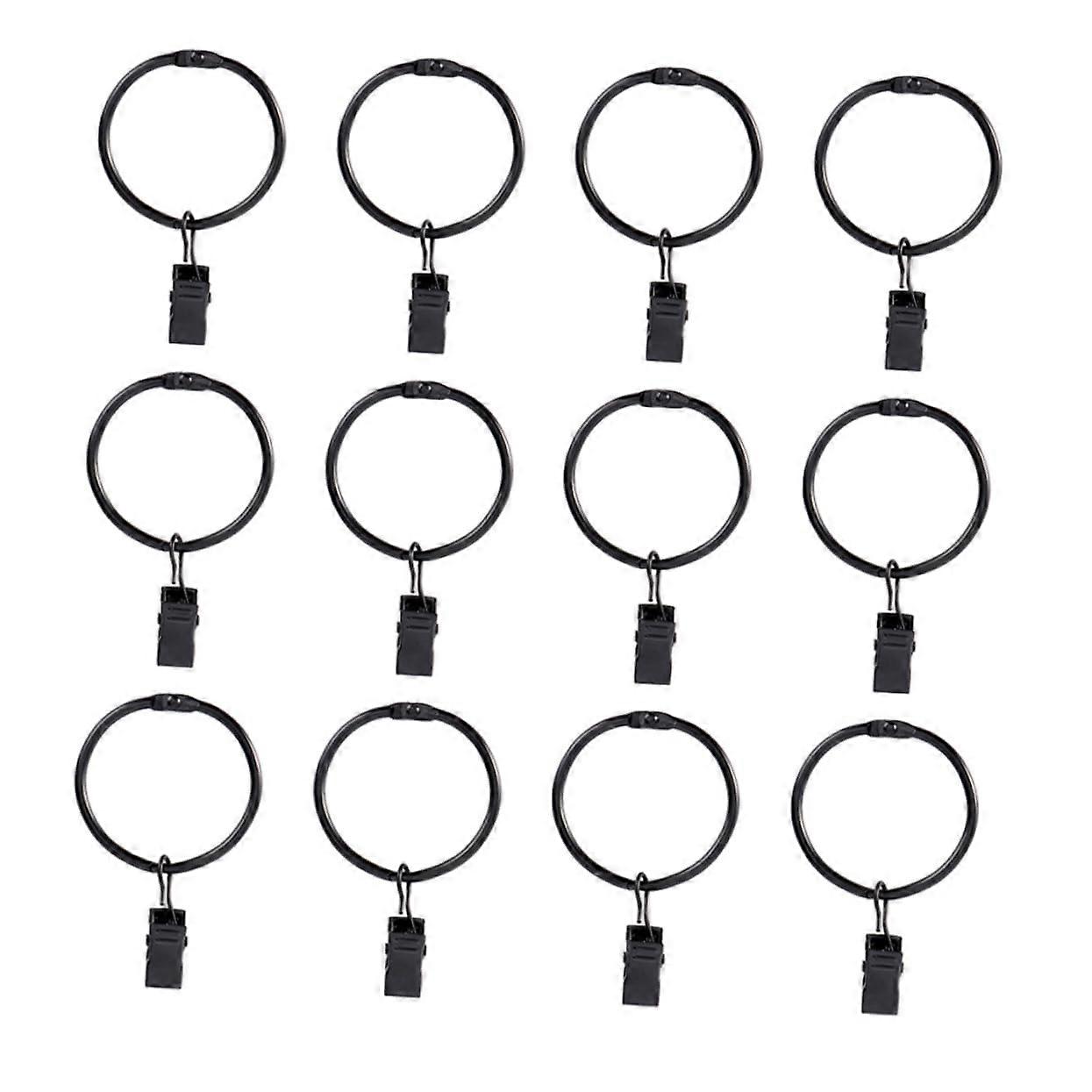24pcs Black Metal Curtain Rings with Clips Heavy Duty Drapes Hooks Vintage Style 38mm Diameter