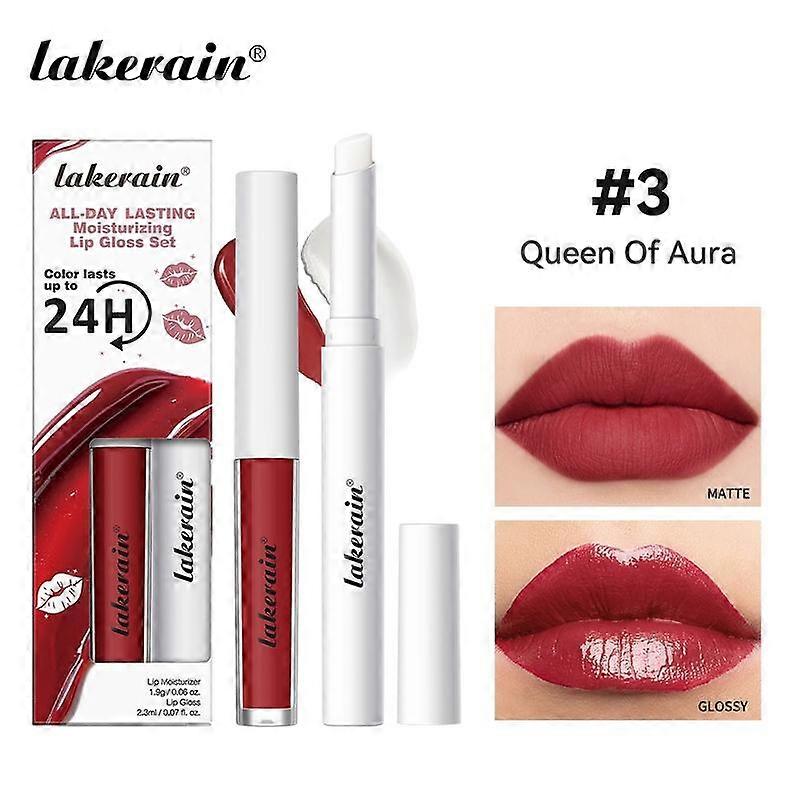 2 Counts Lip Gloss & Lipstick Set, Long-Lasting High-Pigment Lip Stain + Hydrating Moisturizing Lipstick Duo, Matte Velvet & Glossy Shine Fi