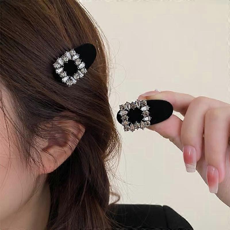 Small Rhinestone Alligator Hairclips Black Velet Duckbills for Girls and Women Shiny Hair Accessories Side Clips Simple Hairpin