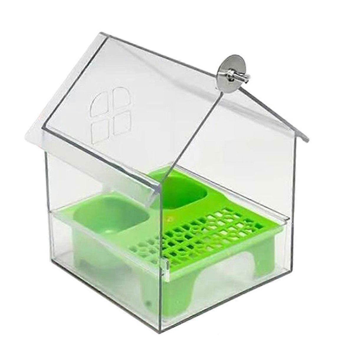 Bird House Feeder Parakeet Feeder Transparent Bath Tub Water Food Dish for Finchs Hummingbird Patio Balcony Fence Garden