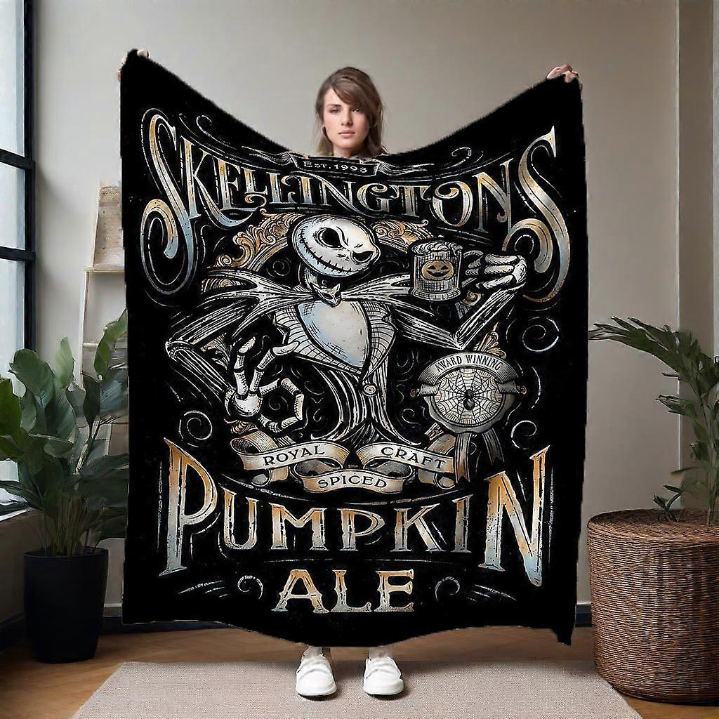 Skelington'S Royal Pumpkin Ale Flannel Blanket | Soft and Durable Polyester, Ideal for Home or Office, All-Season Use, P-OPLKJ200