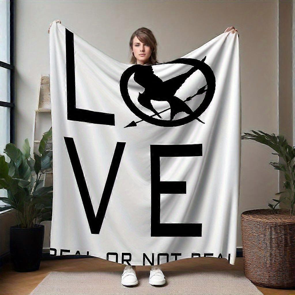 Hunger Games Mockingjay "LOVE REAL OR NOT REAL" Flannel Blanket - Soft All-Season Throw with Symbolic Mockingjay & Arrow-QAZXC19