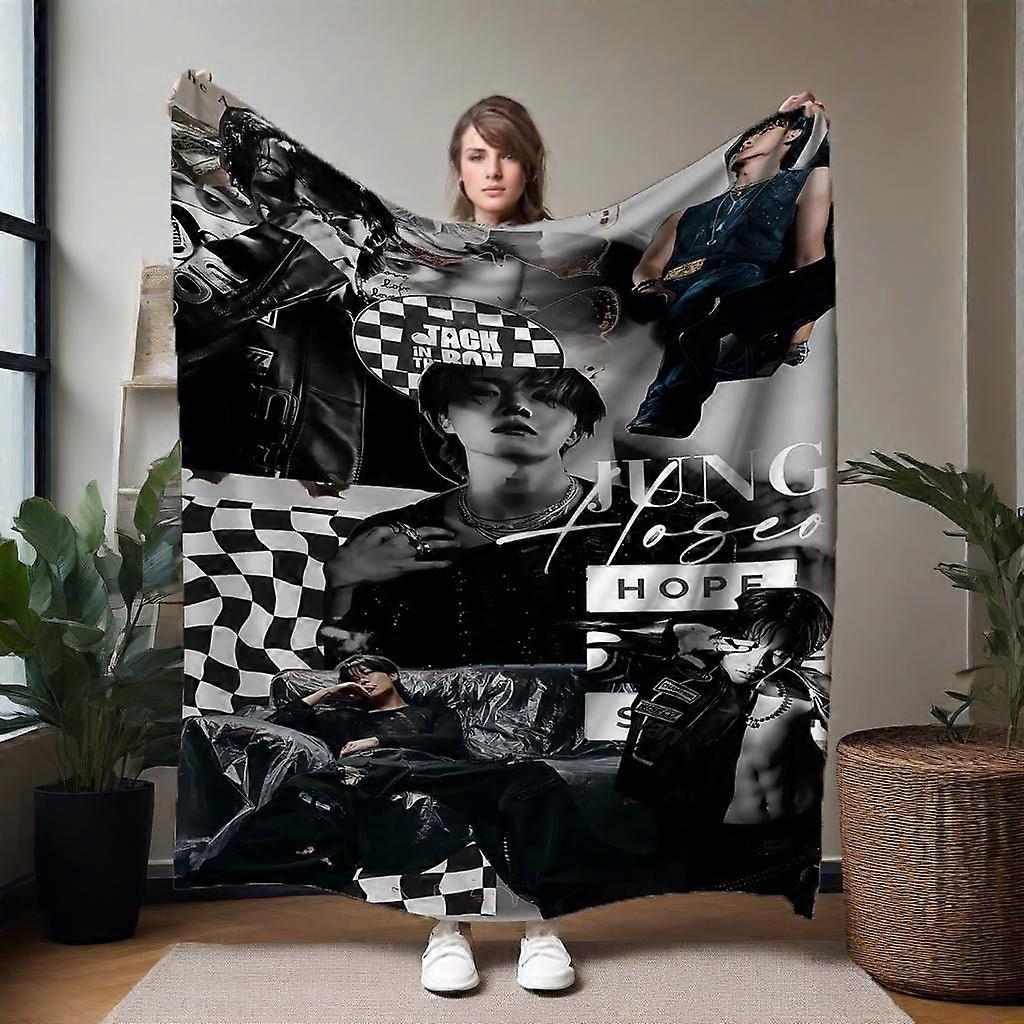 J HOPE Plush Flannel Blanket - All-Season Soft Bedspread & Couch Cover with Iconic J.Hope Logo-Inspired Collage Design, -QAZXC116