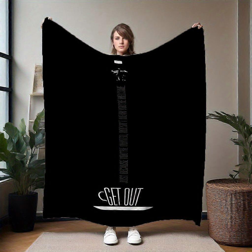 Get Out Movie-Themed Blanket - Soft Flannel Throw with Bold 'GET OUT' Text, All-Season Couch, Bed, Camping, Office Decor-QAZXC350