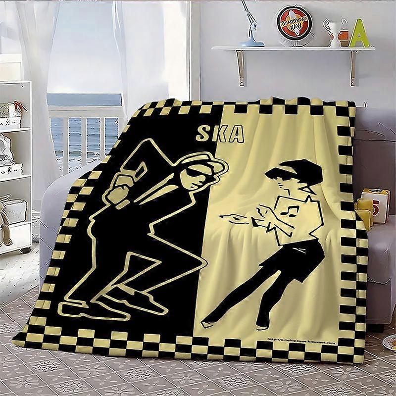 SKA Dancing Soul Black Yellow Grid Pattern Print Blanket, Exquisite Design for Home Bedroom & Guest Room, All-Season Use-CDSAK378