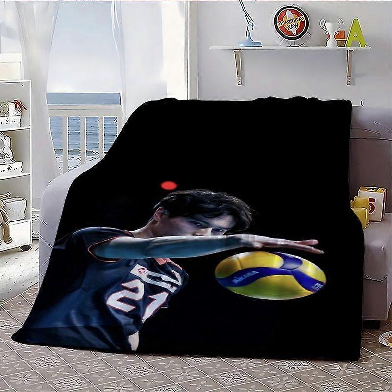 Volleyball Sports Throw Blanket - Takahashi Blue Serving Design - Soft -Wrinkle Flannel Bedspread - All-Season Couch, Gy-MNBVC54