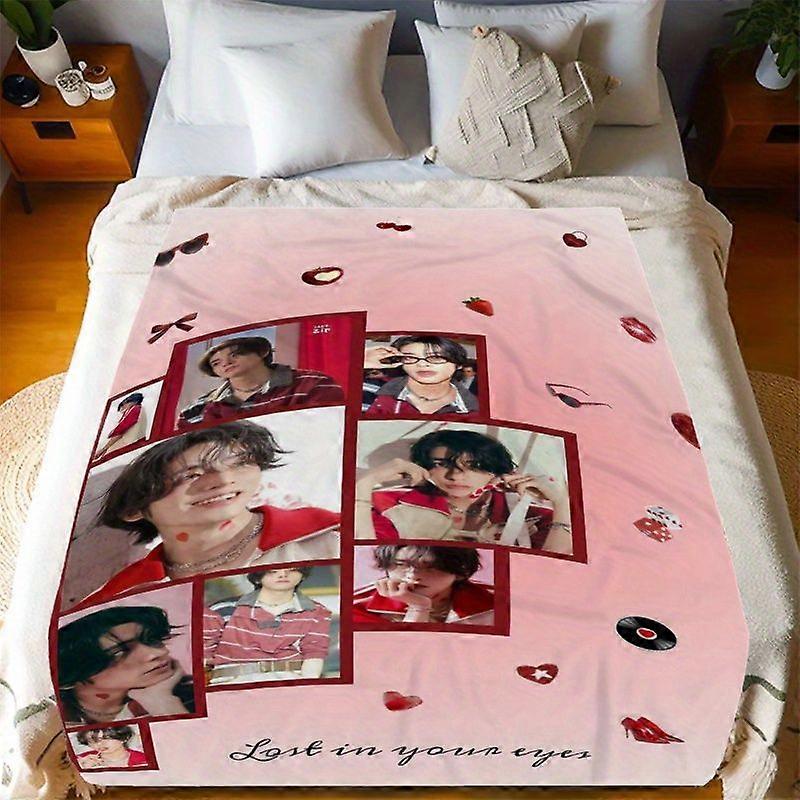 Yellow Crown Romantic Pink Collage with Heart-Shaped Strawberry Accents, Lost in Your Eyes Digital Print Flannel Blanket-MNBVC166