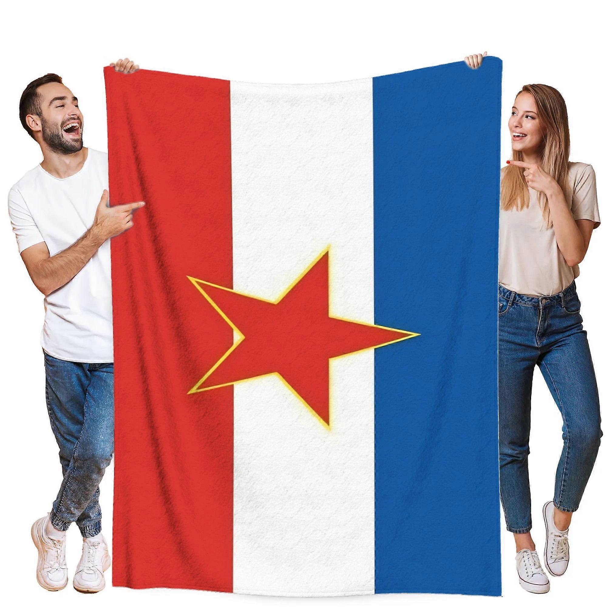 Yugoslavia Flag Inspired Ultra-Soft Flannel Blanket - Cozy All-Season Throw with Red, White & Blue Stripes & Yellow Star-POIUY444