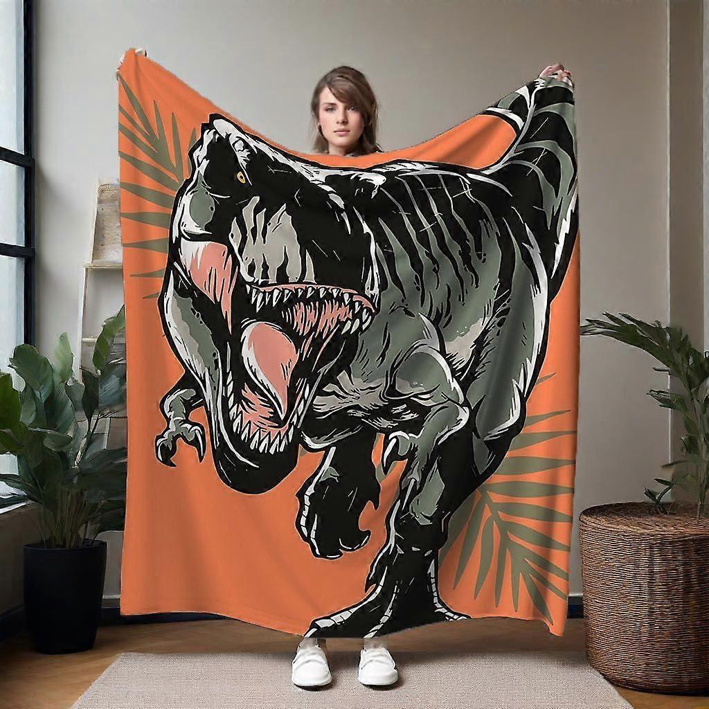 Aggressive T-Rex Flannel Blanket - Soft Warm All-Season Throw with Dinosaur Design, Black & Orange, Perfect for Sofa, Be-QAZXC126