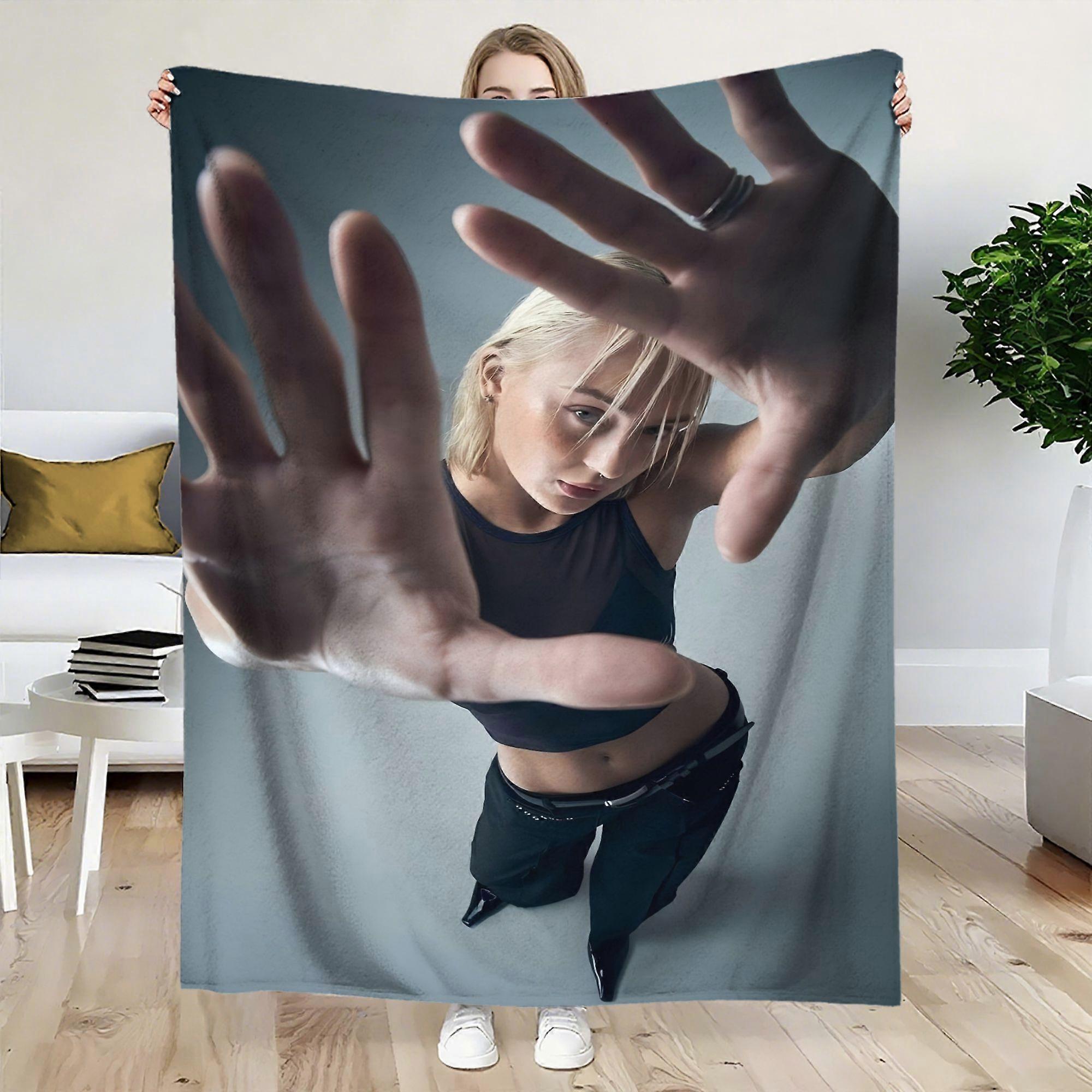 The Black-Clad Woman with Outstretched Hands Presents a Luxurious Fleece Blanket - Soft, Lightweight, And Fluffy | Suita-PHGFD449