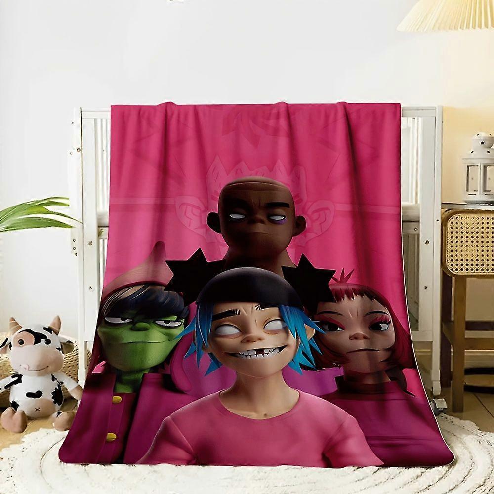1pc Gorillaz Flannel Blanket - Soft Warm Throw with Vibrant Cartoon Character Design, All-Season Cozy Blanket for Bed, C-AZXCV199
