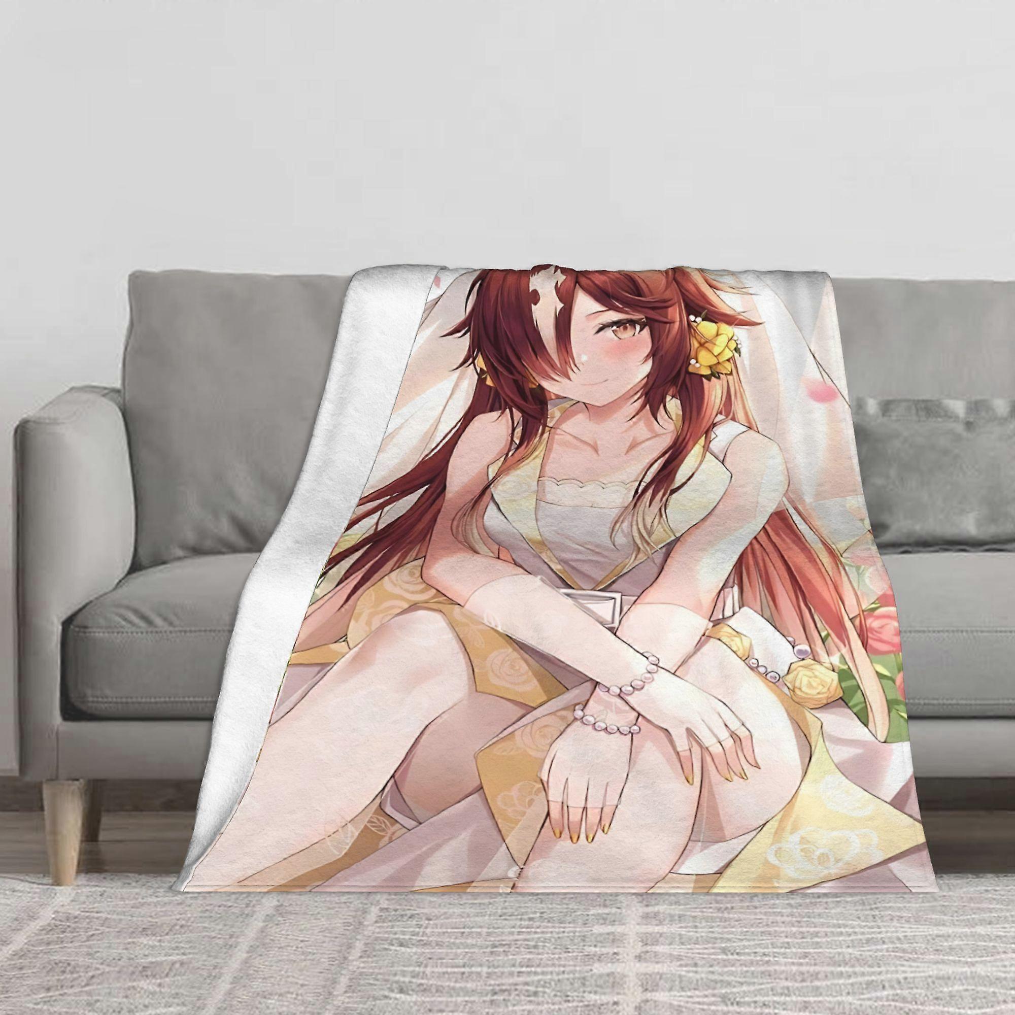 Uma Musume Anime Themed Blanket - Soft Light Beige-Friendly Flannel Bedspread with Anime Character Design, for all-Seaso-AZXCV251