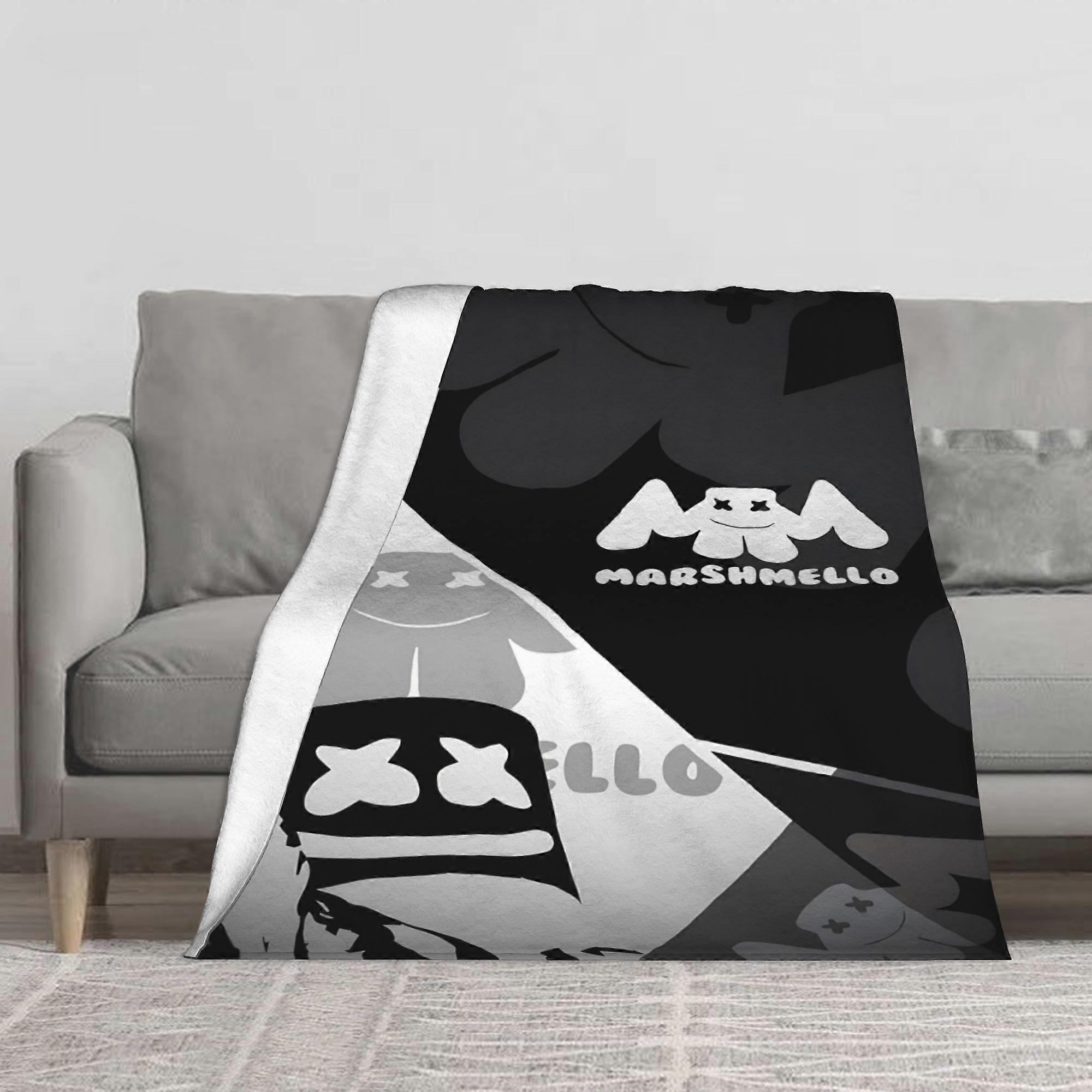 Marshmello Logo & Iconic Mask Plush Blanket - Officially Inspired Bedspread with Marshmello & Lettering, All-Season Soft-AZXRT252