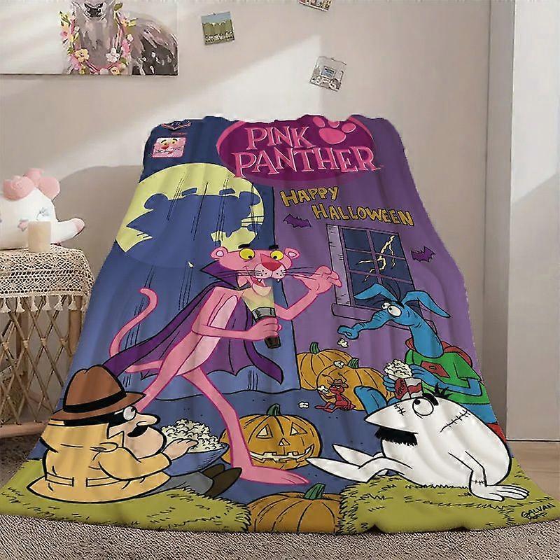 Pink Panther Halloween Comics Themed Printed Soft Warm Blanket - Suitable for Sofa / Office / Bed / Travel, Machine Wash-LKJAAS74