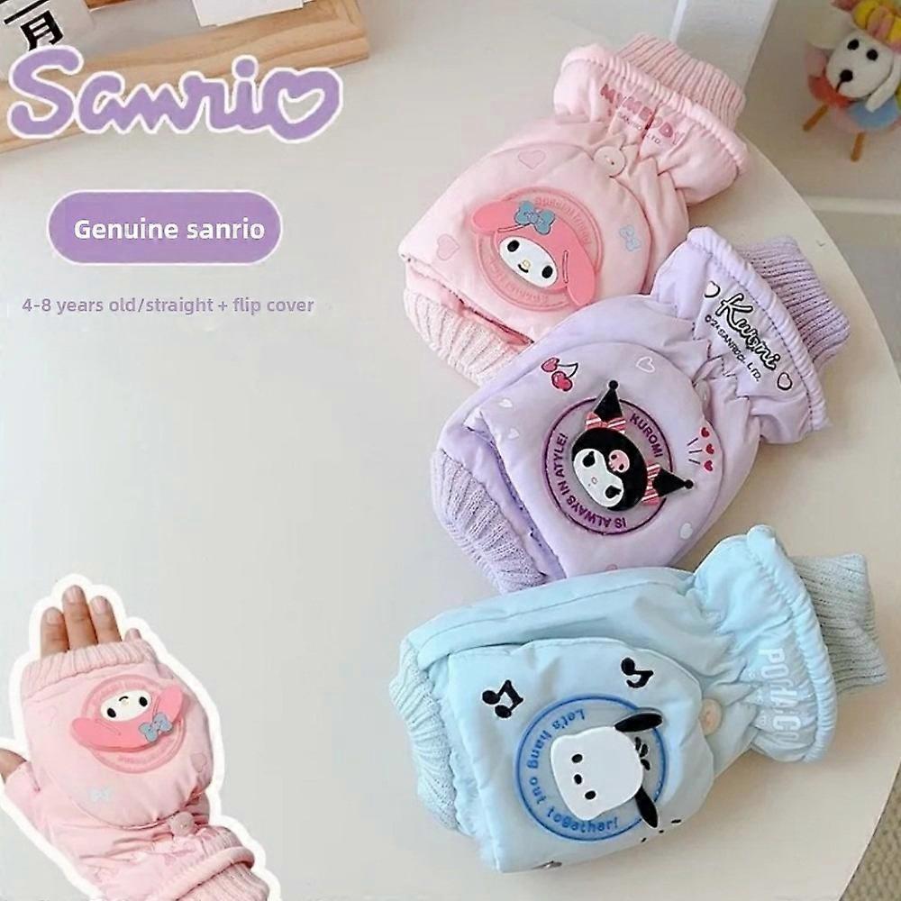 Sanrio Kids Fleece Lined Gloves Kuromi Girls Winter Waterproof Gloves Cartoon Flip Top Opening Warm Gloves Children Gifts