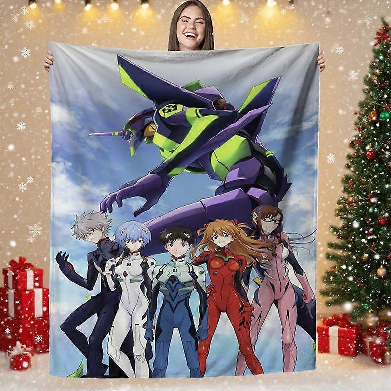 EVA Anime Characters Themed Blanket - Soft Warm Cozy Bedspread Suitable for Sofa, Office, Bed & Travel, Machine Washable-LKJAAS266