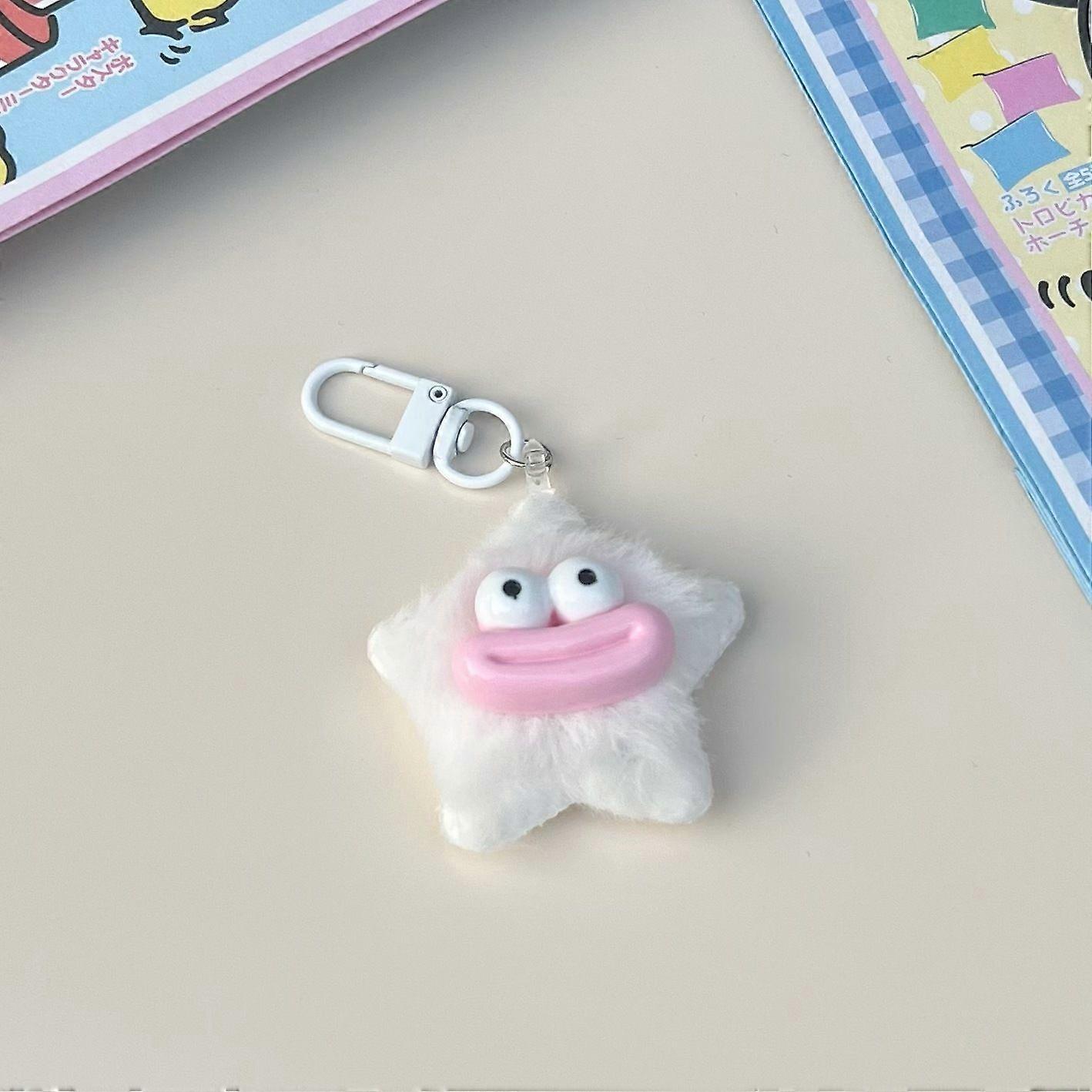 Cute Cartoon Funny Star Keychain Plushies Mini Sausage Mouth Keyring Colorful Big Mouth Star Plush Pendant Girls