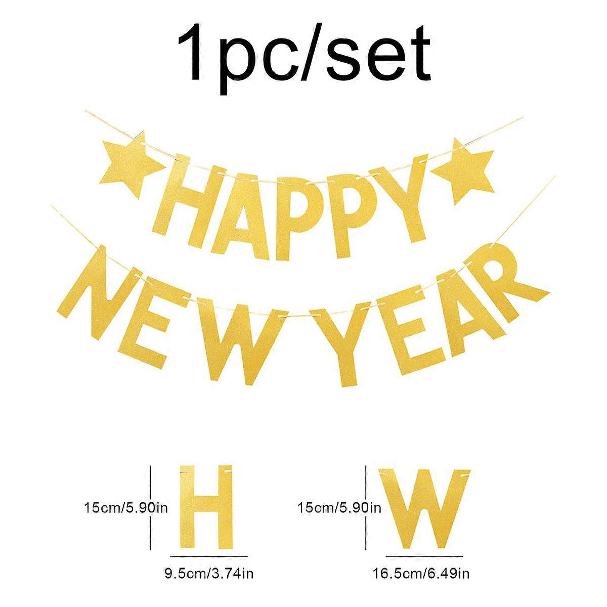 HAPPY NEW YEAR black gold fishtail bronzing loose powder flag-raising party decoration banner 1 set 1 piece.