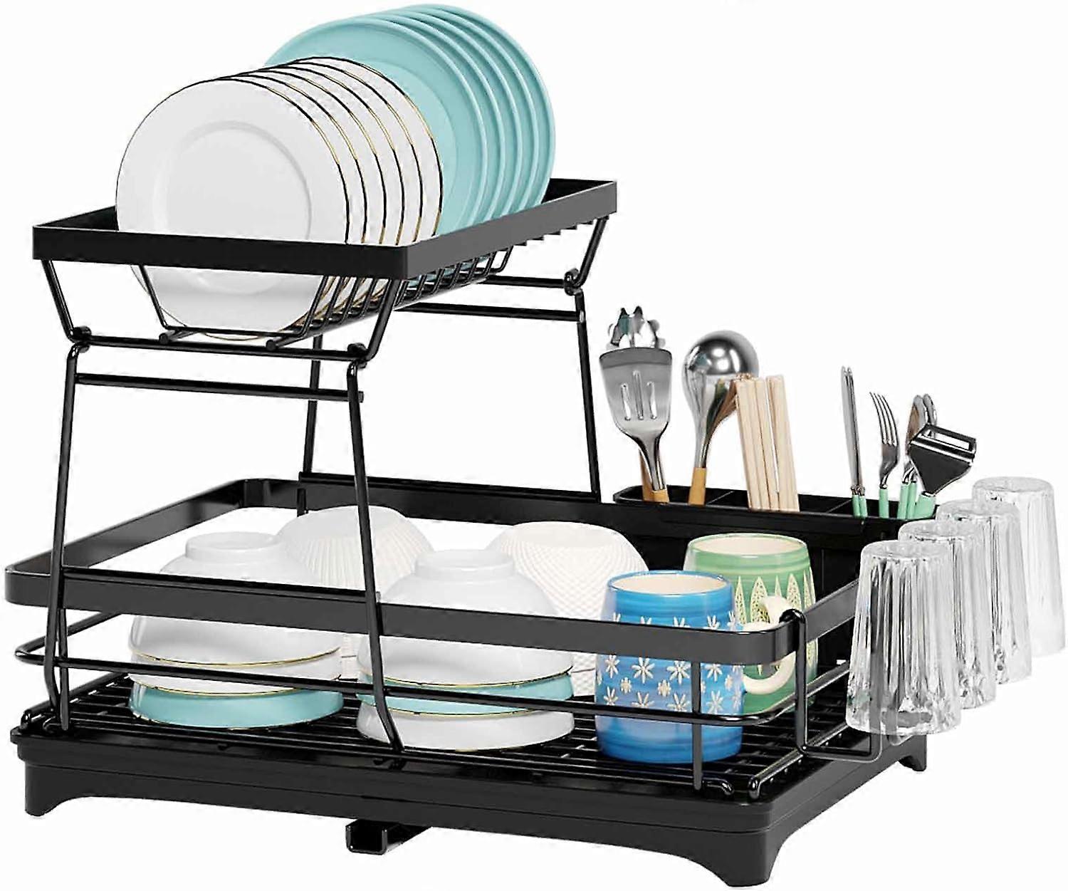 Carla Home 2 Tier Dish Drying Rack For Kitchen Counter With Drainboard Utensil Holder Cup & Cutlery Organizer Other Kitchen Storage