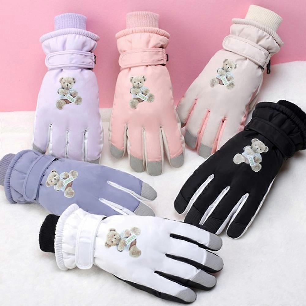 New Children Ski Gloves Cute Winter Bear Plush Warm Gloves Waterproof Windproof Outdoor Hiking Cycling Accessories for Kids