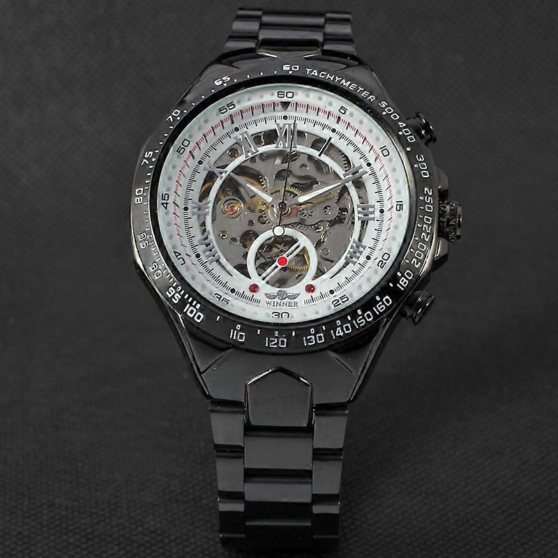WINNER Men Gold Watches Automatic Mechanical Watch Male Skeleton Wristwatch Stainless Steel Band Luxury Brand Sports Design
