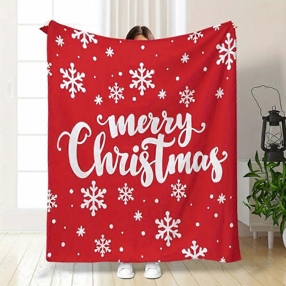 1pc Cozy Red & White Merry Christmas Snowflake Flannel Blanket - Soft Tear, Christma Throw Blanket