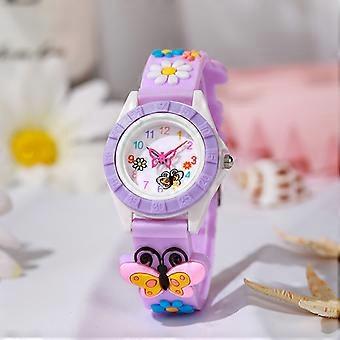 Children's Watch Simple Digital Butterfly Hands Design Quartz Watches Casual Sports Purple Silicone Girls Clock Gift Wristwatch