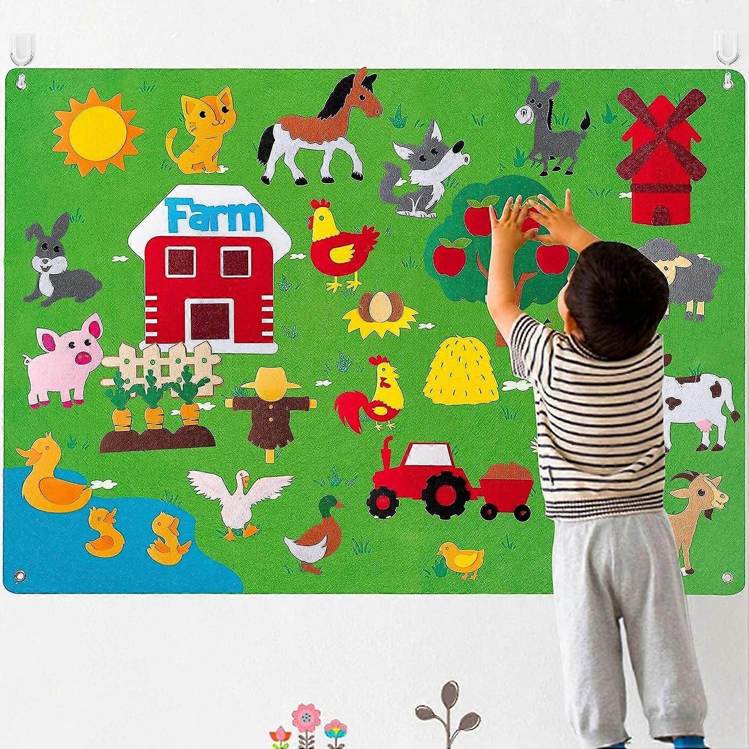 WATINC Farm Animals Felt Story Board Set 3.5Ft 38Pcs Preschool Farmhouse Themed Storytelling Flannel Barnyard Domestic Livestoc