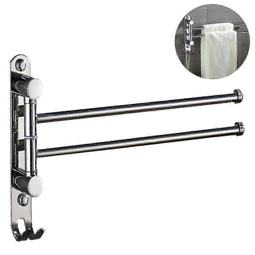 Material: Stainless steel<br> Color: Style 1, Style 2<br> Size: 35*19.5cm<br> Number of strokes: 2<br> Installation method: paste, drill<br> Package content: 1*stainless steel movable towel rack<br> 1.2 Swivel Towel Bar: The towel bar features four swivel arms that move independently to keep your towels dry and neatly organized, which is perfect for organizing your face towels, bath towels and clothes in order in your bathroom or kitchen. It creates a versatile area for hanging multiple bath essentials such as bath towels, washcloths, loofahs, bathrobes, and clothing.<br> 2.Flexibility: The towel bar swivels 180, it can be conveniently swing out for easy access and retrieval of items and pushed against the wall when not in use for space-saving storage.<br> 3.Safety Anti Dropping Cap Design: To prevent towels from accidentally falling to the ground as well as effectively avoid being scratched.Hand polished stainless steel finish, build to resist daily scratches, corrosions and tarnishing.<br> 4.Easy Installation: ONE piece, NO assembly required. Easy to install the towel rack on the wall with the included mounting hardware, to save space.<br> 5.THE PERFECT TOWEL BAR FOR ANY BATHROOM: The towel bar features 2 swivel arms that move independently to keep your towels dry and neatly organized, which is perfect for organizing your face towels, bath towels and clothes in order in your bathroom or kitchen.