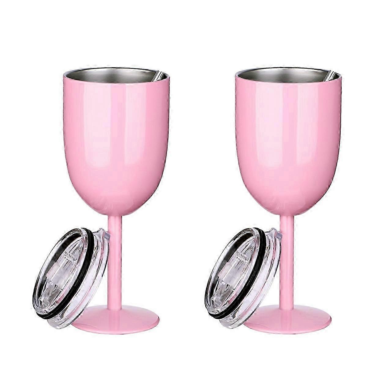 2PCS Stainless Steel Travel Wine Glasses Pink Double Wall Insulated